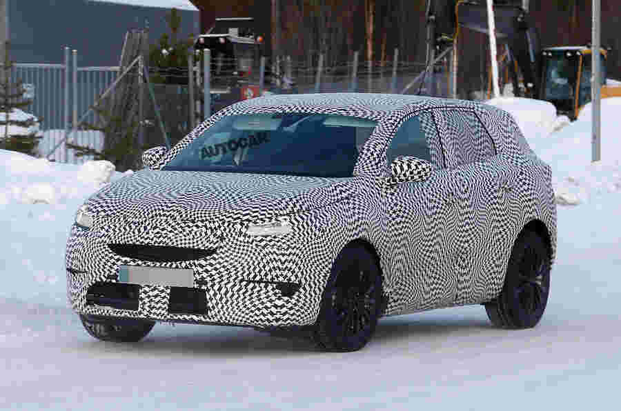 尽管较厚的伪装,但汽车的较长阀杆和拳击师后部将其除了较小的Crossland X型号,它将介于上面。