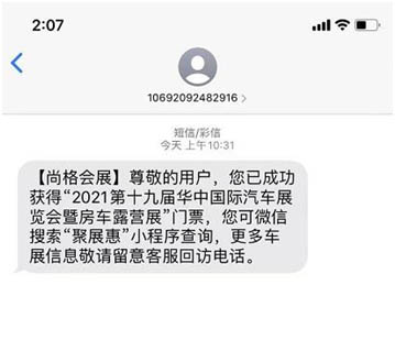信息填写后,点击“查看入场券”,电子票即显示成功,车展现场扫码入场。